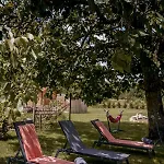 Также есть общая кухня с микроволновой печью, кофеваркой и кухонной утварью, а из окон комнат открывается вид на сад.